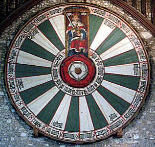 the 24 knights are written around the edge of the 18 foot diameter table,